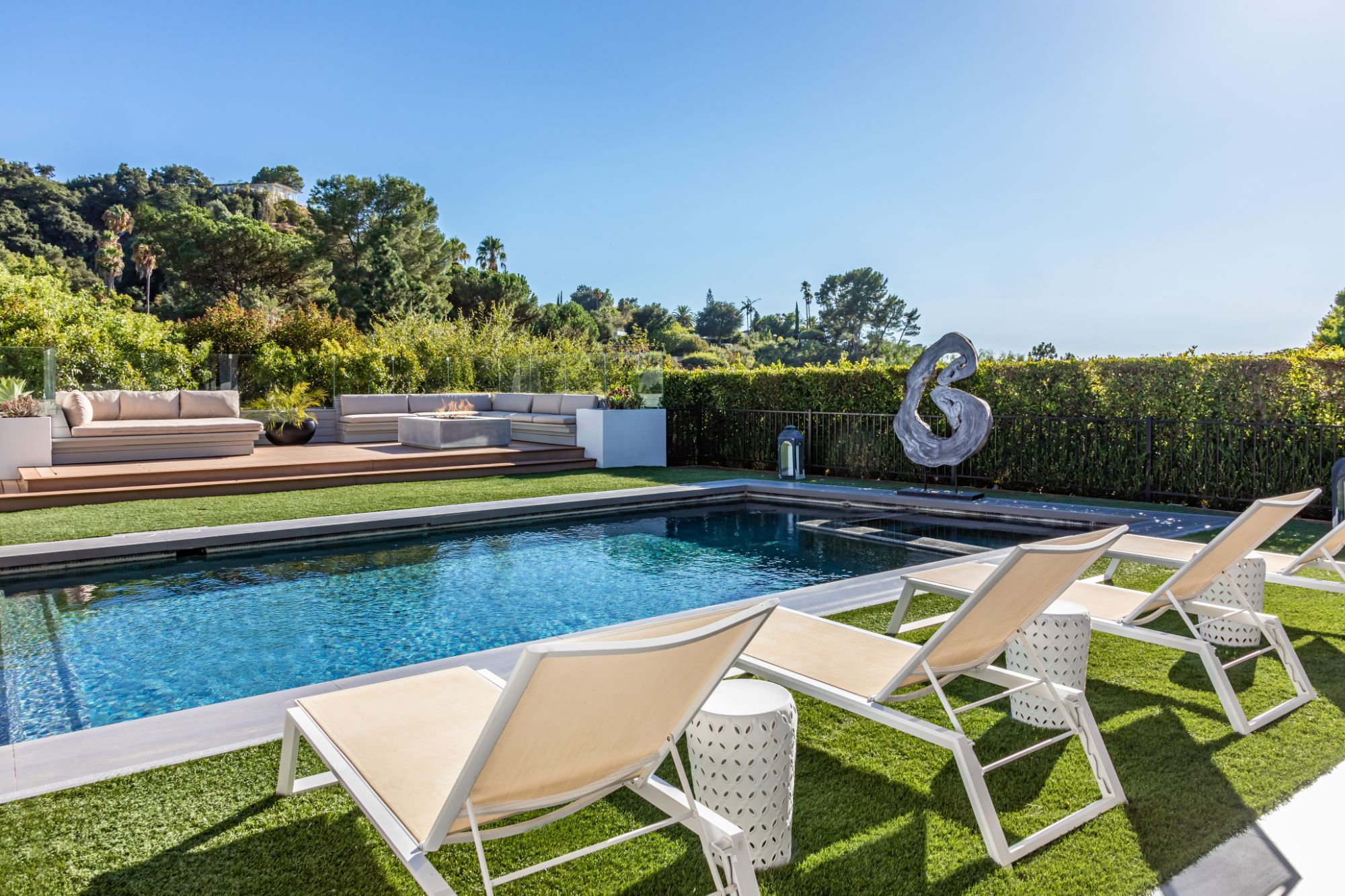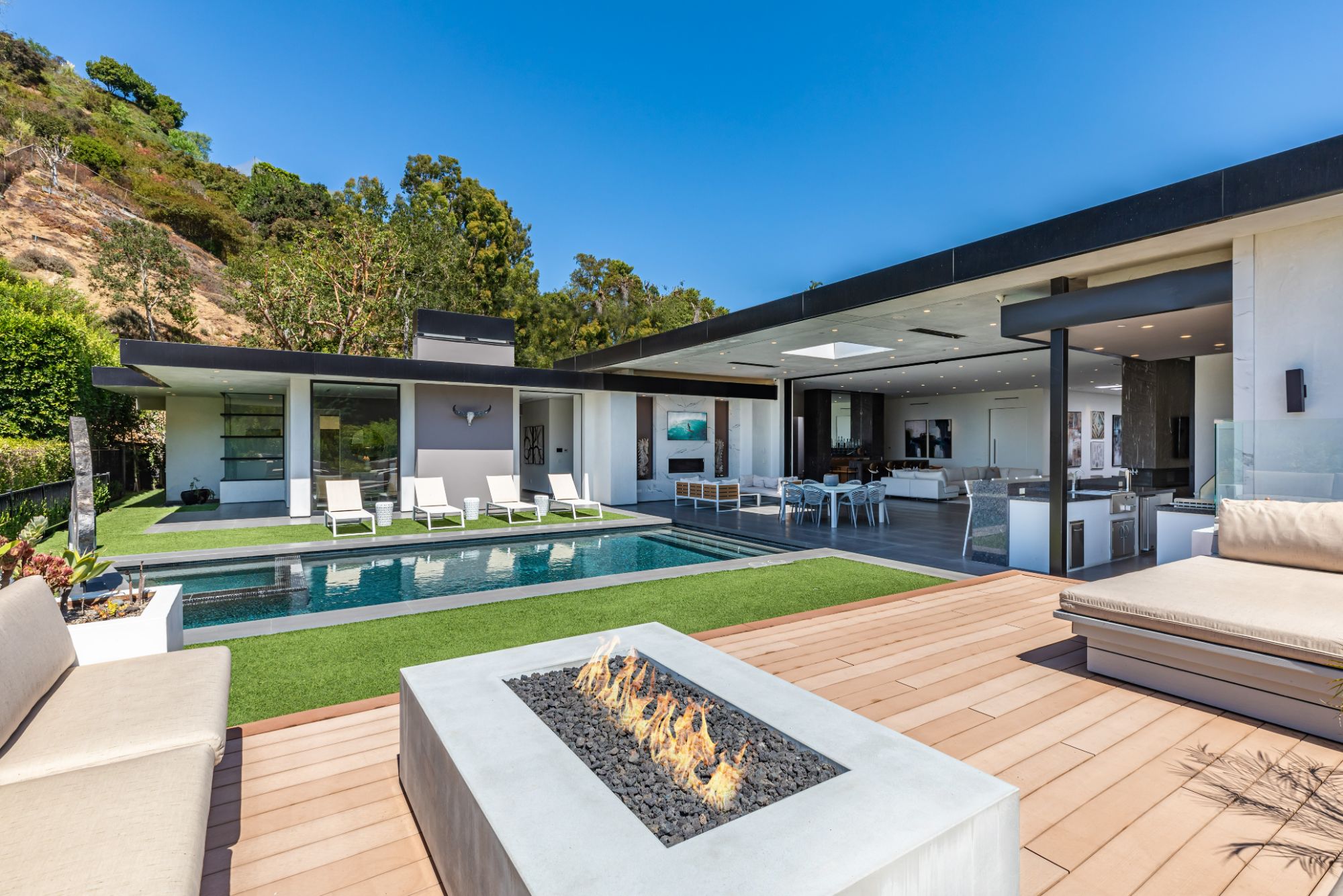 A modern masterpiece on a sprawling 37,000 SF prime lot in the exclusive Trousdale Estates. Tucked away off Loma Vista Drive, behind a gated 200-foot-long gated driveway, this property ensures complete privacy while offering breathtaking canyon views. Once the site of Dean Martin's home, this newly constructed estate, completed in 2017, embodies luxury and glamour. With over 10,000 SF of living space, the estate features 12-foot ceilings and the latest and greatest amenities, including Crestron home automation system. The floating entrance leads to a light-filled gallery-style foyer that is perfect for displaying your art collection. The expansive great room includes a living room, family room, and bar, all enhanced by motorized Fleetwood doors opening to a remarkable outdoor space for seamless indoor/outdoor living. The outdoor oasis features a large patio, fireplace, a pool, an outdoor kitchen with a 48" BBQ range, and lush canyon views. The formal dining room boasts a wine display for 300 bottles, adjacent to a custom kitchen with Miele appliances. The luxurious primary suite offers a fireplace, dual walk-in closets, and a spa-like bathroom. Four additional bedroom suites feature private patios, and amenities include a theater, gym, and spa. With a motor court for 20+ cars and a three-car garage, this estate offers an unparalleled living experience in an exclusive locale. This Trousdale estate represents the pinnacle of luxury living, offering an unmatched blend of privacy, elegance, and breathtaking views in one of Los Angeles' most exclusive neighborhoods.